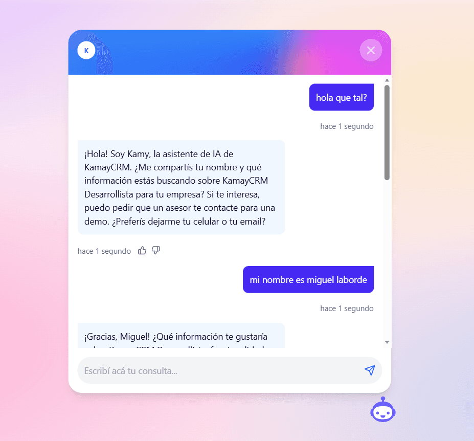 Como a tus documentos los cargamos y se lo damos de contexto a Kamy, podes preguntarle cualquier información al respecto.